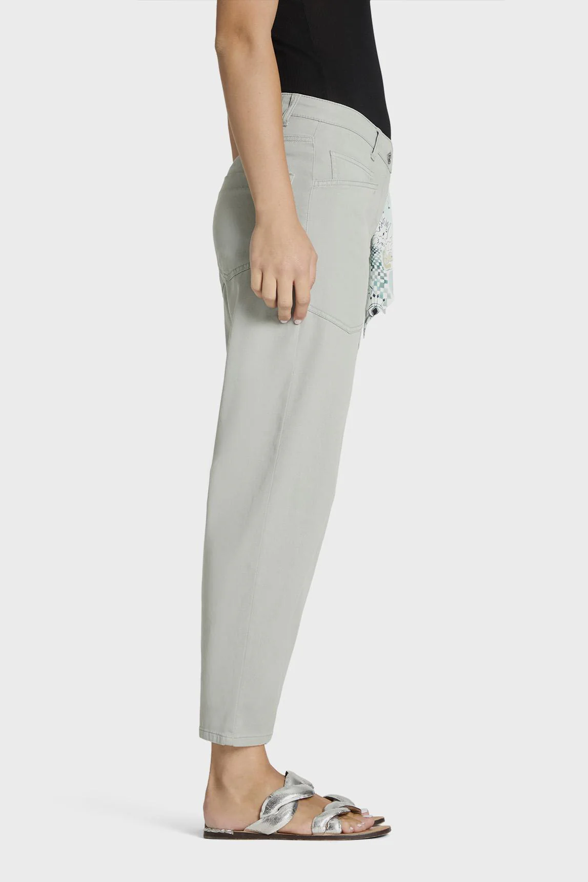 Este pantalón de la firma Cambio presenta la característica silueta O-Shape cropped, reconocible por su volumen suave en la parte superior y su pernera ligeramente estrechada hacia el tobillo. Esta forma redondeada envuelve la figura con naturalidad, creando un equilibrio armonioso entre amplitud y definición que aporta comodidad sin perder una estética contemporánea.